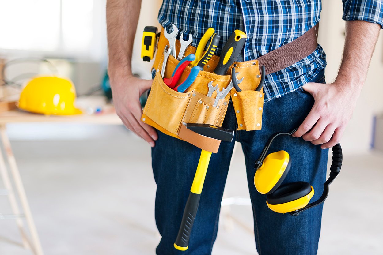 Part of construction worker with tools belt